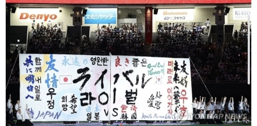 野球の日韓戦狩猟後の日本の観客席の様子。