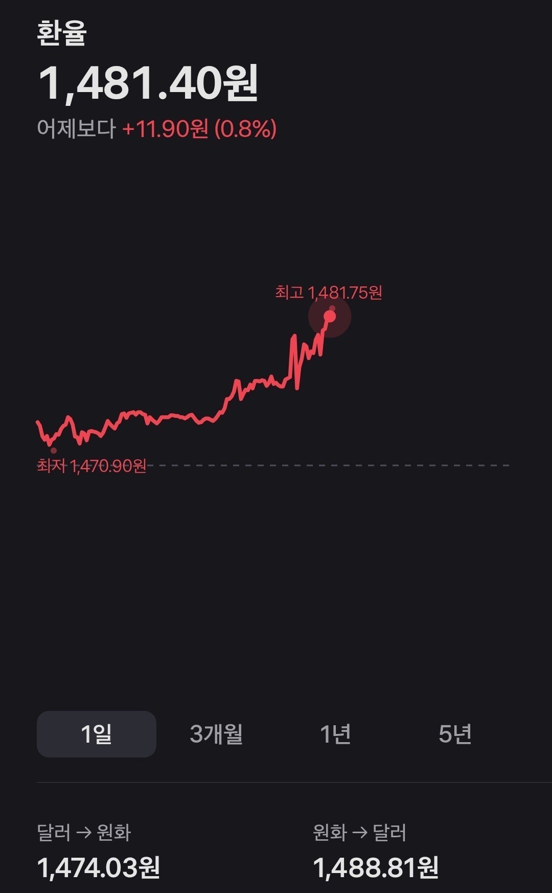 リアルタイム)ウォンドル為替レートが1481.75ウォンまで到達…(ブルブル