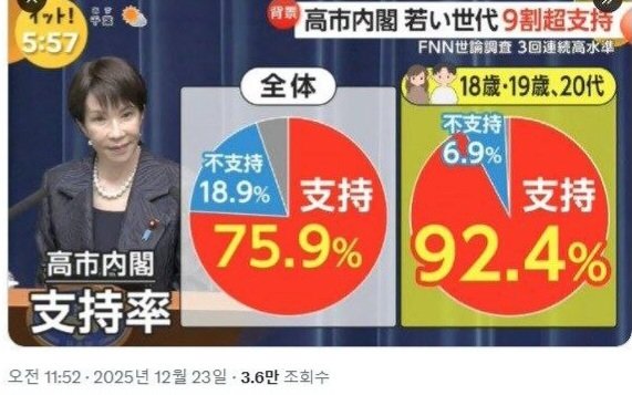 日本の高市早苗内閣の支持率が約76%に達していることが分かった。特に20代の支持率は90%を超えており、若年層が主要な支持基盤として浮上しているとの評価が出ている。