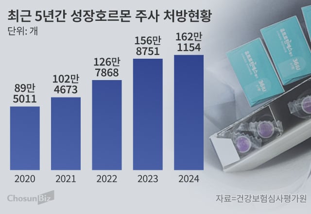 成長ホルモンブームは統計にも表れている。健康保険審査評価院によると、19歳以下の未成年に成長ホルモンが処方された件数は、2020年の89万5011件から2024年には162万1154件へと、ほぼ2倍に増加した。同期間の処方額も約597億ウォンから1593億ウォンへと約2.6倍に拡大している。