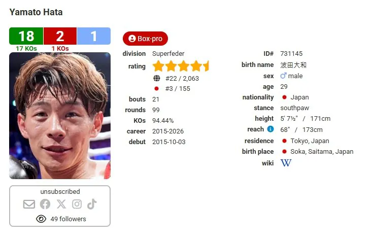 相手はスーパーフェザー級日本ランキング3位、世界ランキング22位。KO率94.44%を誇る強打者、波田 大和。