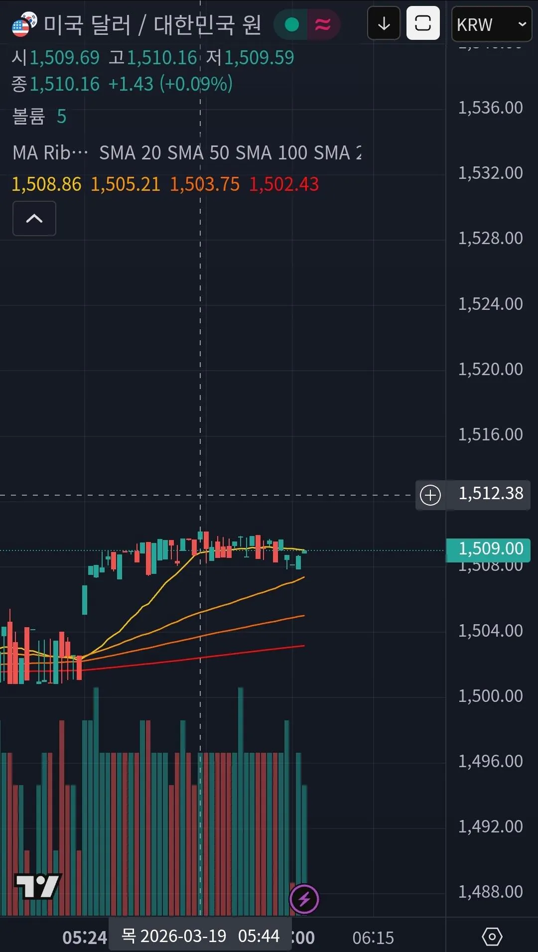 ウォンドル為替レート1510ウォン達成