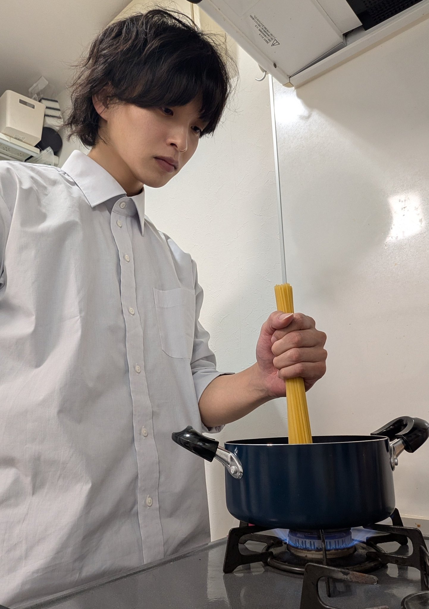 パスタの下が柔らかくなるのを待っている人
