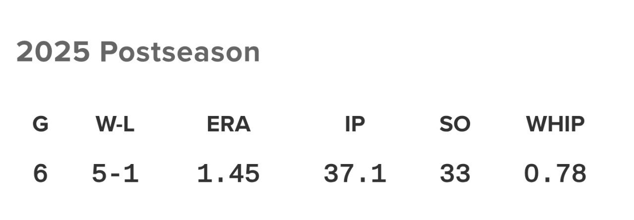 2025年ワールドシリーズMVP 山本由伸のポストシーズン最終成績