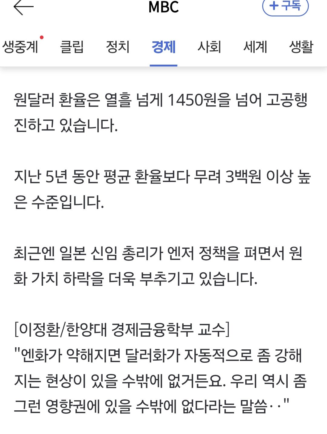 〈MBC〉ウォン価値の下落の原因には、日本の新しい首相の責任もある。