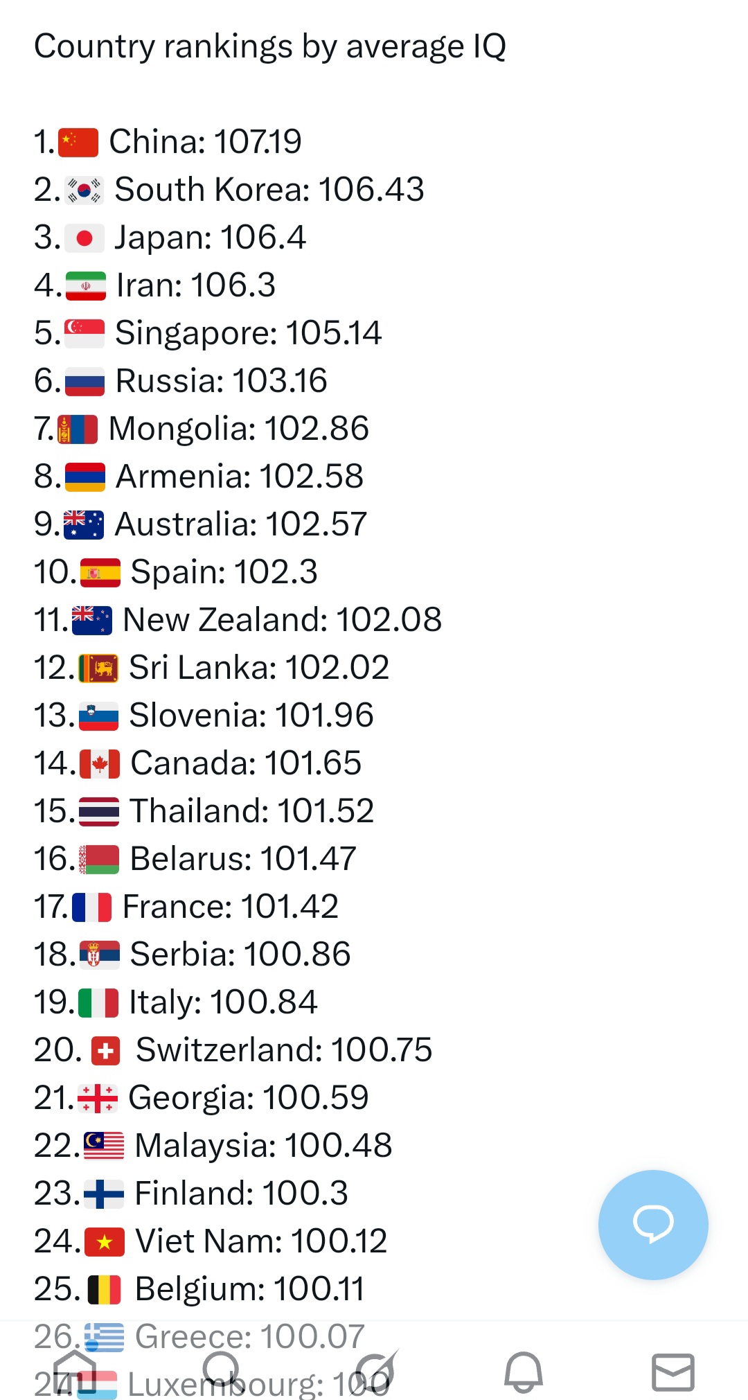 韓国のコミュニティサイトより「世界のIQランキング」というスレの反応を翻訳して紹介します。