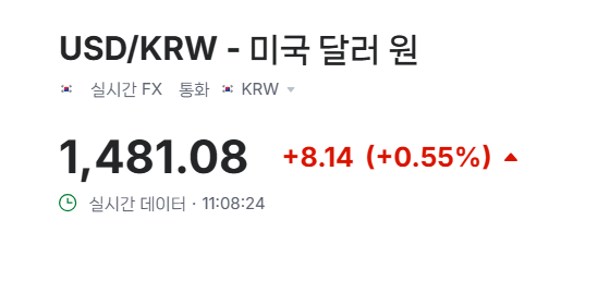 リアルタイムウォンドル為替レート1481.08、戒厳為替レートを突破
