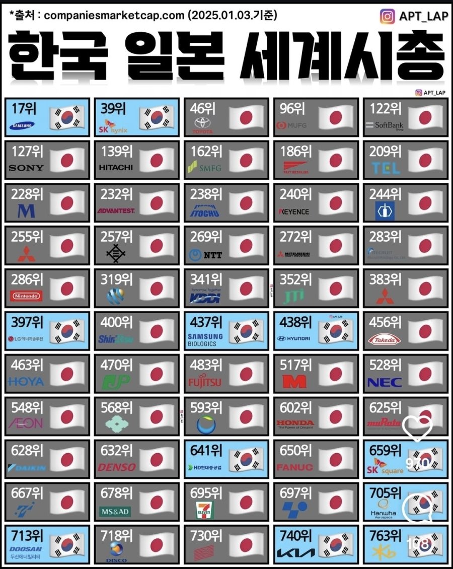 韓国のコミュニティサイトより「韓国・日本、世界の時価総額ランキング」というスレの反応を翻訳して紹介します。