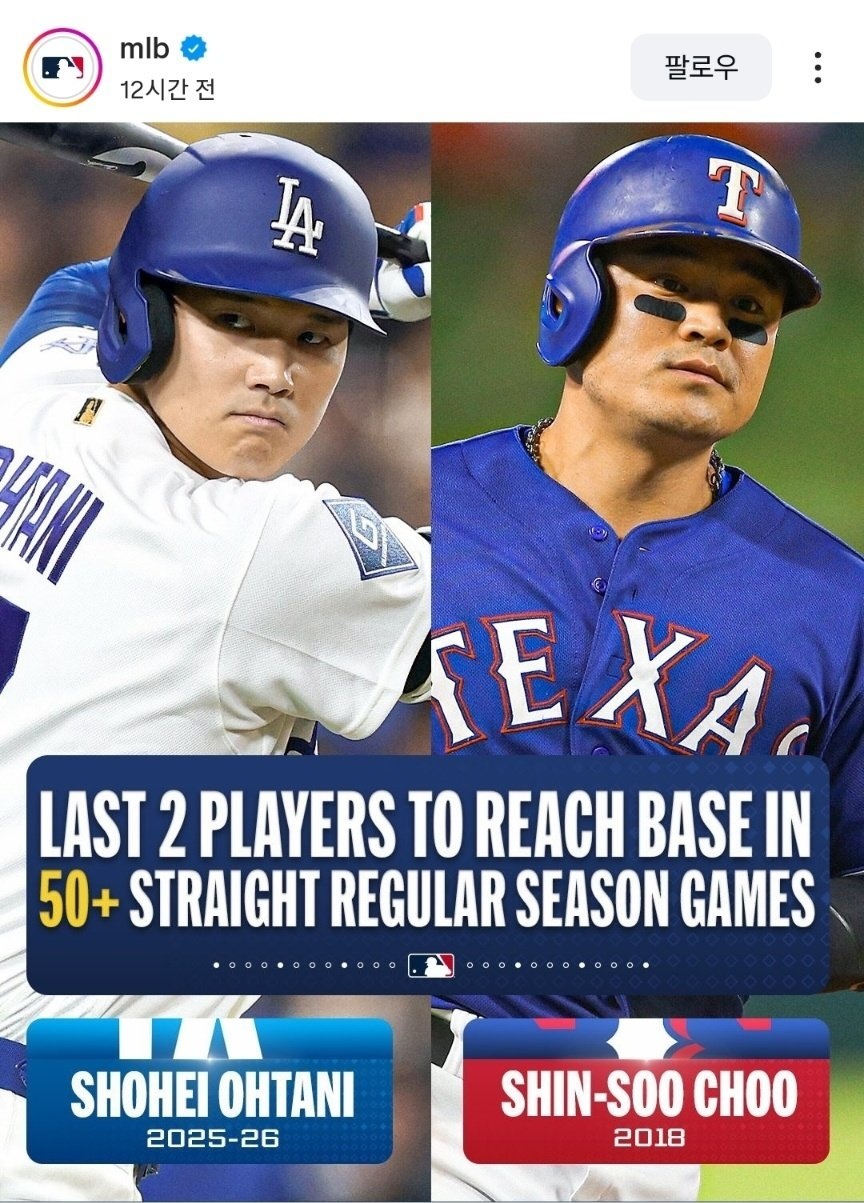 MLB公式も久しぶりにチュ・シンスに言及してる(feat. 大谷翔平)